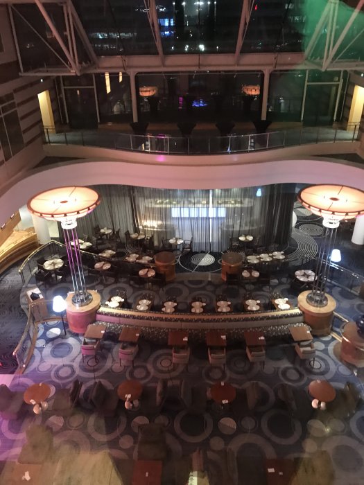 Hissarna går med utsikt över baren/restaurangen: