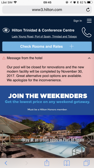 I detta fall står det ingenting på Starwood-sidan medan man på sin egen sida får upp informationen om man klickar på SPA.