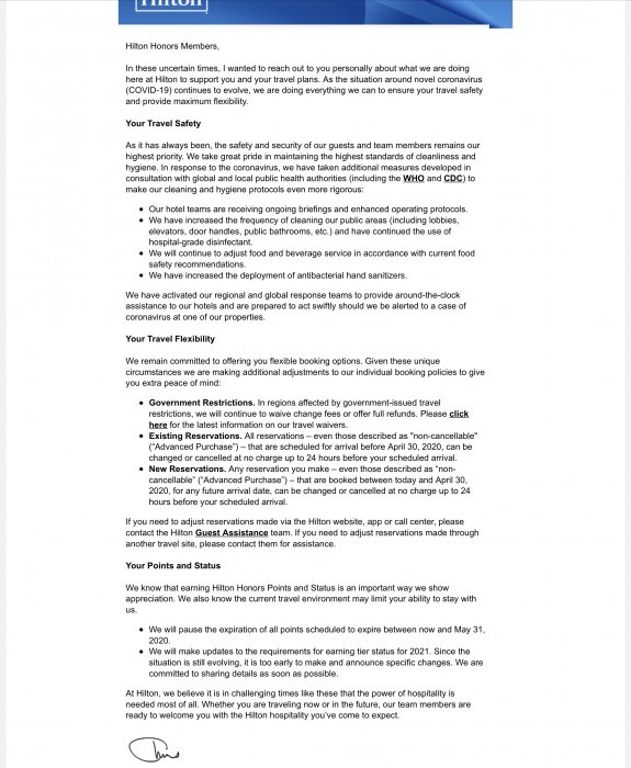 As you navigate future travel plans and circumstances beyond your control, we'd like to give you one less thing to worry about. In that spirit, I would like to personally share news of two decisions we have made to protect your hard-earned benefits: