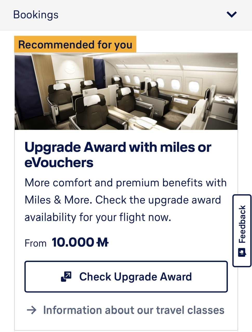 Såg att LH sedan igår erbjuder uppgradering med eVoucher eller Miles på deras Miles&More hemsida under Current Bookings. Man kan alltså direkt se om man kan bli uppgraderad eller om man hamnar på Waitlist.