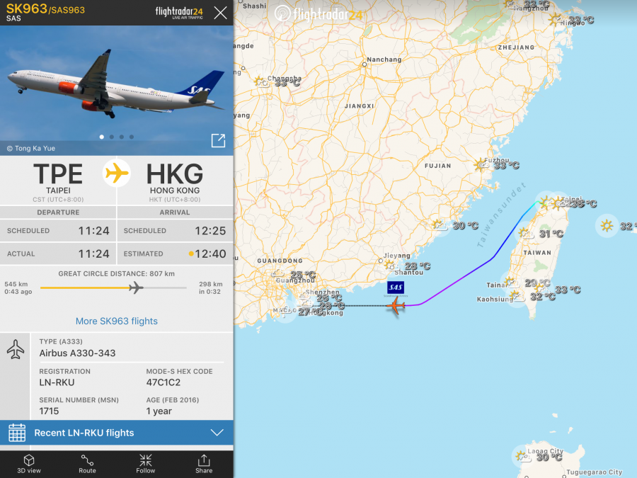 Det blir nog eftersom i SK963 kl 11.24 DEP TPE mot HKG