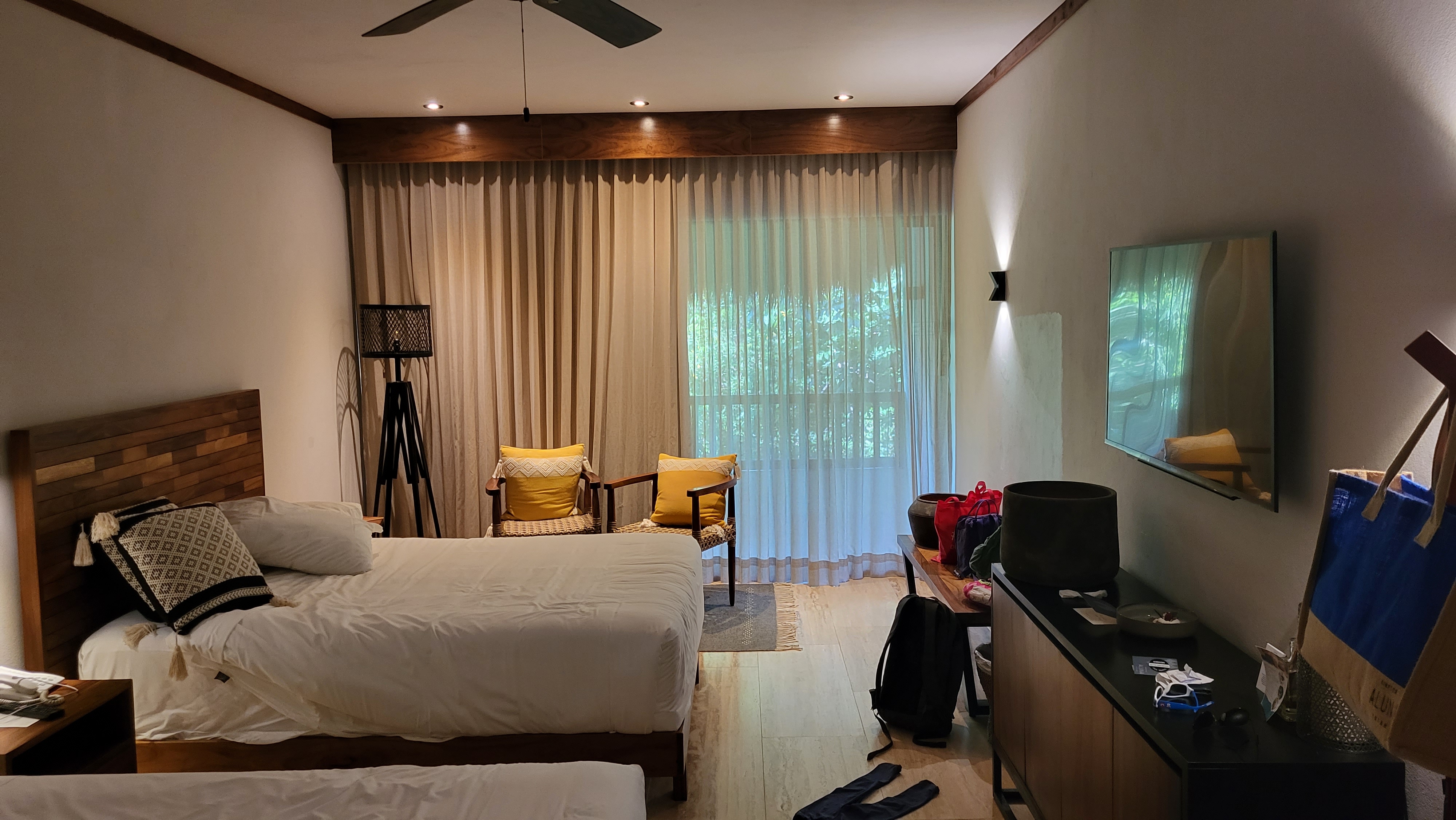 Ombord på den mytomspunna 787-9 Max väntade ca 90min i 2+2 konfiguration med riktiga business-säten. Modest servering i form av småpåsar med snacks samt drycker. Med infotainment fulladdat med Disney och superhjältar var flygturen över i ett nafs. Inflygning över djungel och solnedgång var en hit.