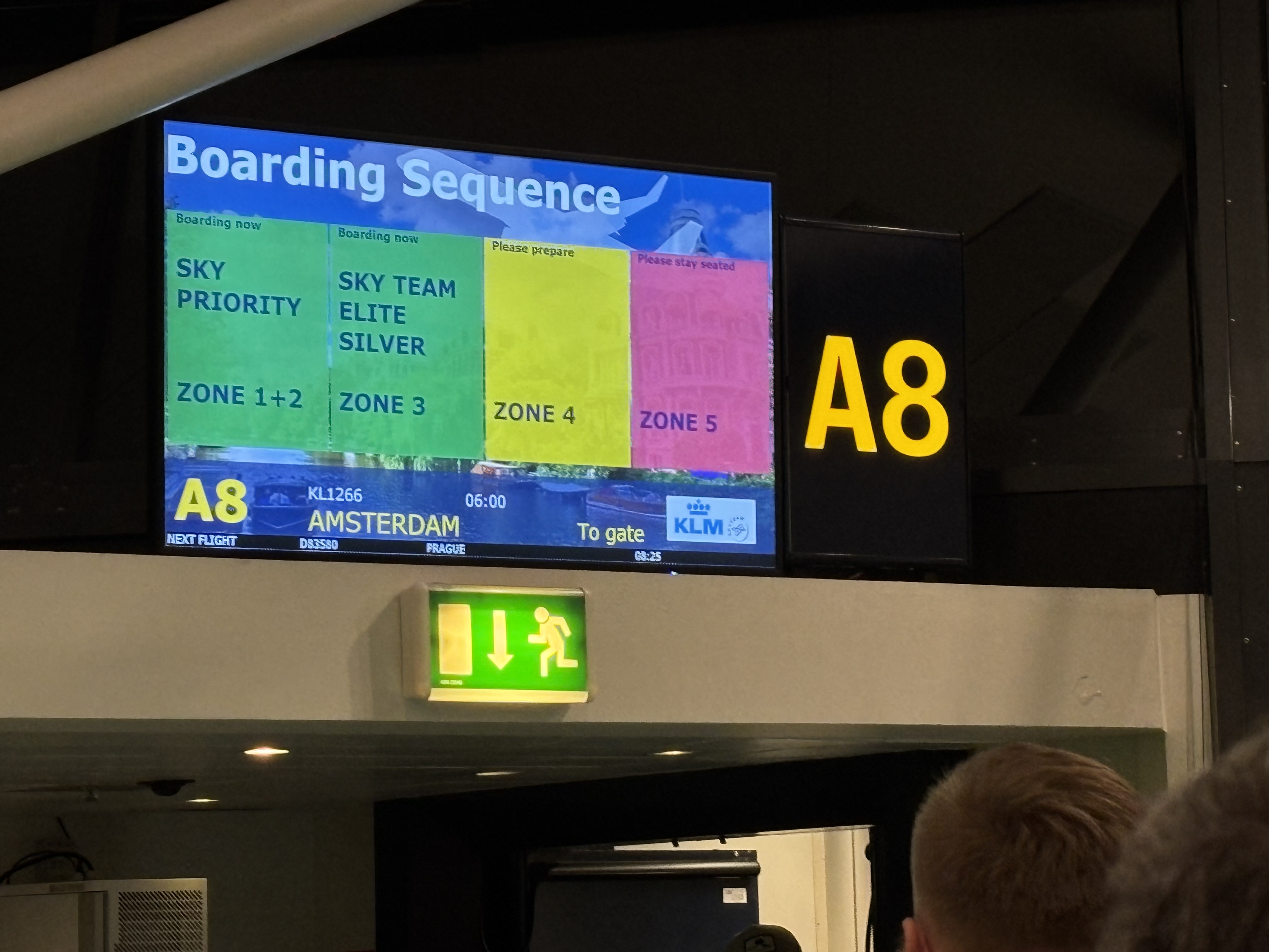 Nästa flyg, AMS-LHR. Jag hade blivit tilldelad en mittplats. Jag lade in charmen och frågade gatepersonalen om det fanns någon fönsterplats ledig. Hon skruvade på sig lite, och förklarade att planet är i princip fullsatt följt av lite holländskt prat med sin kollega. Och vips, så hade jag helt plötsligt exit row seat 15A. Otroligt tacksamt får någon som är 193cm lång.