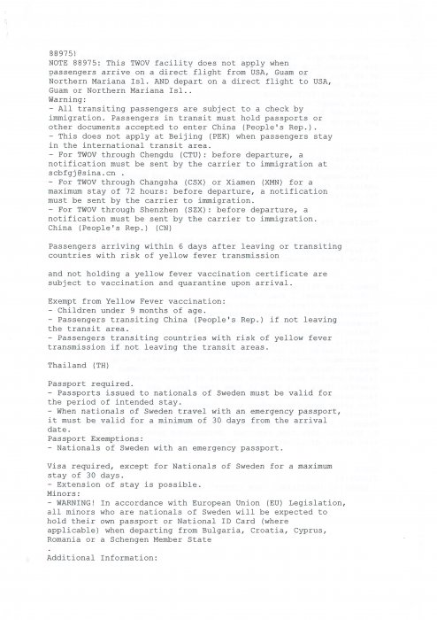 Vid incheckning i Stockholm så var agenten mycket skeptisk när jag saknade visum i passet. Jag var dock förberedd och hade med mig en pappersutskrift med timatic-texten om inresekrav (fyra sidor), och hade markerat det relevanta stycket med överstrykningspenna. Efter att hon hittat samma text i sin dator, läst den noga och tittat på bokningsbekräftelsen för hemresan så blev jag incheckad. Det hela tog runt 10 minuter.
