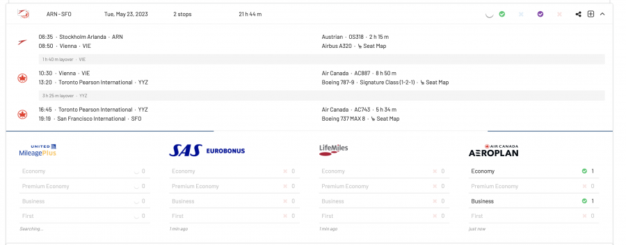 Awardfares använder Aeroplan som datakälla. De ger bättre tillgänglighet på Air Canada flyg till sina egna medlemmar.Tror ni att dom hittar den på Kundservice (SAS, inte AMEX)