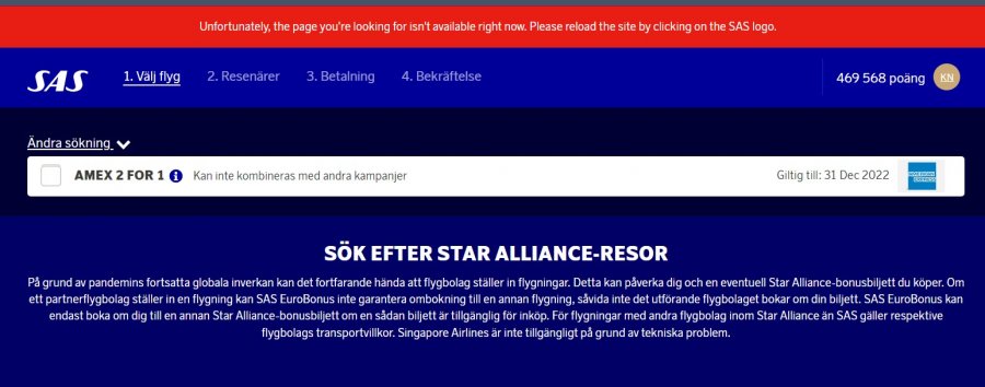 Möjligt att boka Star Alliance awards på SAS.se igen! 2021-12-16