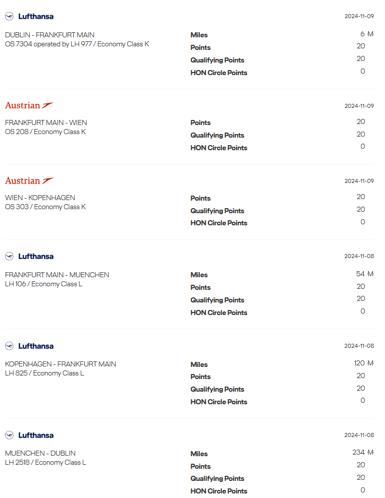 Har alla som kört sina sex legs fått statusen förlängd? Jag gjorde mina i början av November men ännu inte fått det. Alla mina sex flighter/segment var med Lufthansa och Austrian och alla sex har gett poäng om jag kollar i M&M-appen/siten: