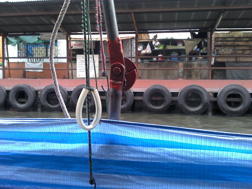 Man boardar från höger sidan av båten vid Pratunam Pier. Här gäller inte internationell regler. (man boardar från vänster sida väl? Det gäller fortfarande och därför boardar man från vänster sida på ett flygplan.)