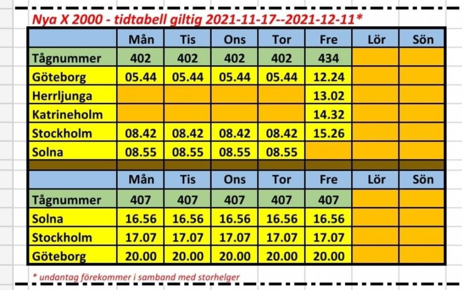 Jag tittade snabbt på avgångarna den 27/12 samt 28/12 från Stockholm mot Göteborg, och då ser det ut som om X2C skall gå i tåg 441 från Stockholm kl 16.33. Har inte dock kläm på vilken avgång X2C går i motsatt riktning.Ska åka Sthlm-Gbg t/r med tåg v. 2. Hur kan jag egentligen se att det är nya tågsättet? Är rätt flex med tider...