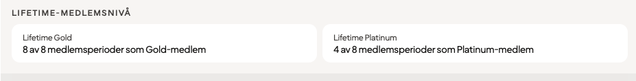 Samma för mig. 8 av 8 Guld. Jag har iofs varit Guld nån gång, kanske flera, kommer inte ihåg före covid. Och nu Platinum i tre år. Ringe in precis och frågade om detta stämmer. Hon kunde inte heller se att deras system beskrev mig som LTG även det står 8 av 8. Deras support skulle återkomma nästa vecka. Tills dess litar jag inte på nån.Alltså, det här med progress till lifetime som enligt webinariet "är rätt".