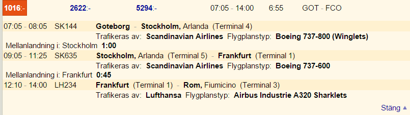Men det ser inte bättre ut från ARN antar jag eftersom en del av de bästa priserna även går: GOT-ARN-FRA-LH-FCO: