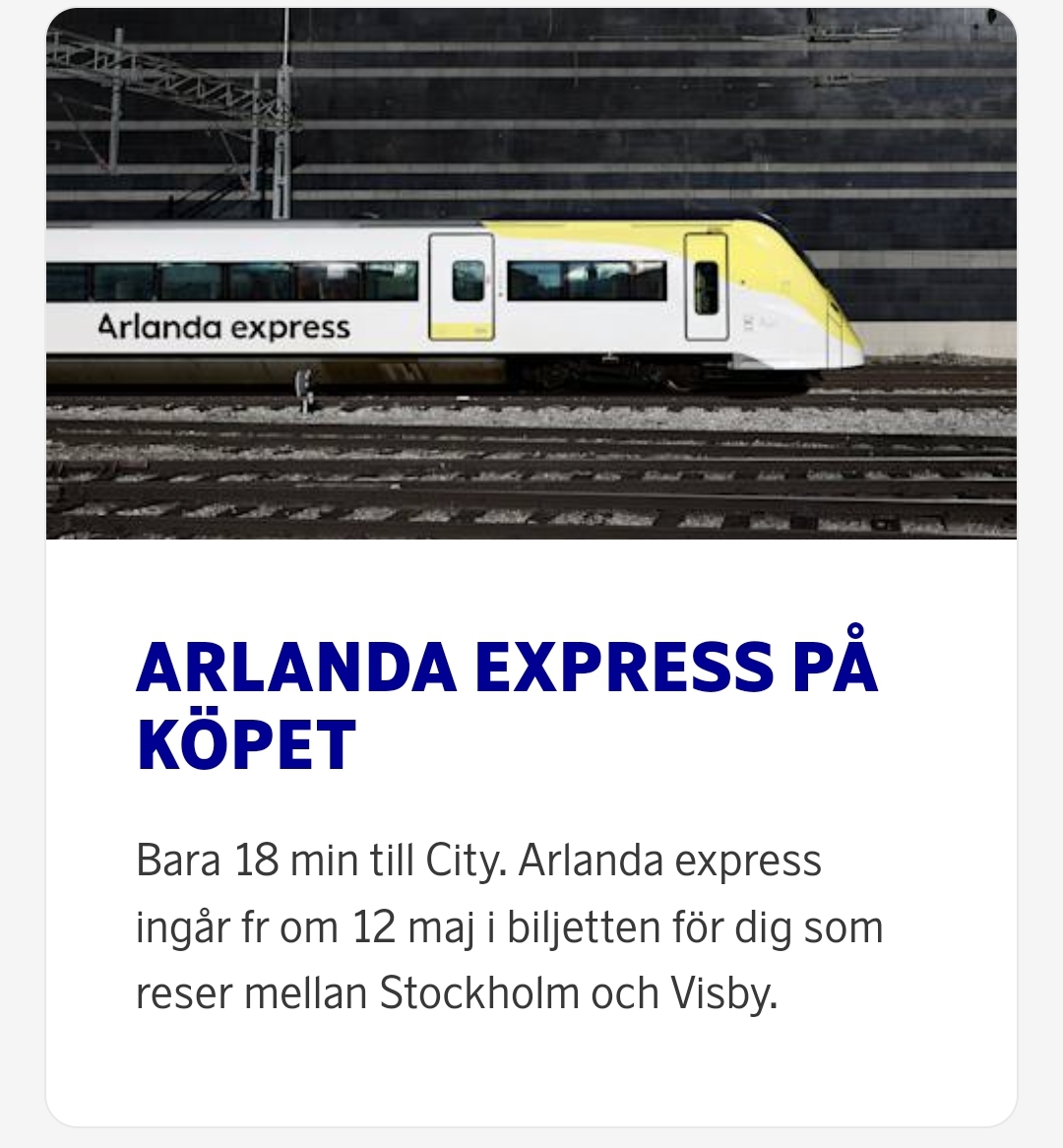 Uppskattas av oss gotlänningar!Sedan är jag lite försiktigt skeptisk till SAS uttalande om att det varit planerat sedan länge. Det har mullrat en del i leden på Gotland sedan trafiken till Bromma avslutades och det ryktas att en grupp affärsmän håller på att dra igång ett konkurrerande flygbolag med trafik till Bromma. Det är ju dock en del pyssel innan det blir verklighet och själv förundras jag över hur bekväma vi gotlänningar kan vara ibland. Tydligen är det för många närmast katastrof när man måste ta vägen via Arlanda till Stockholm istället. Frågan är om man värderar de extra minuterna så mycket att man är villig att sätta sig på någon nykomlings små skitplan (minns hur det var förr i tiden pre ATR med tex Skyways).