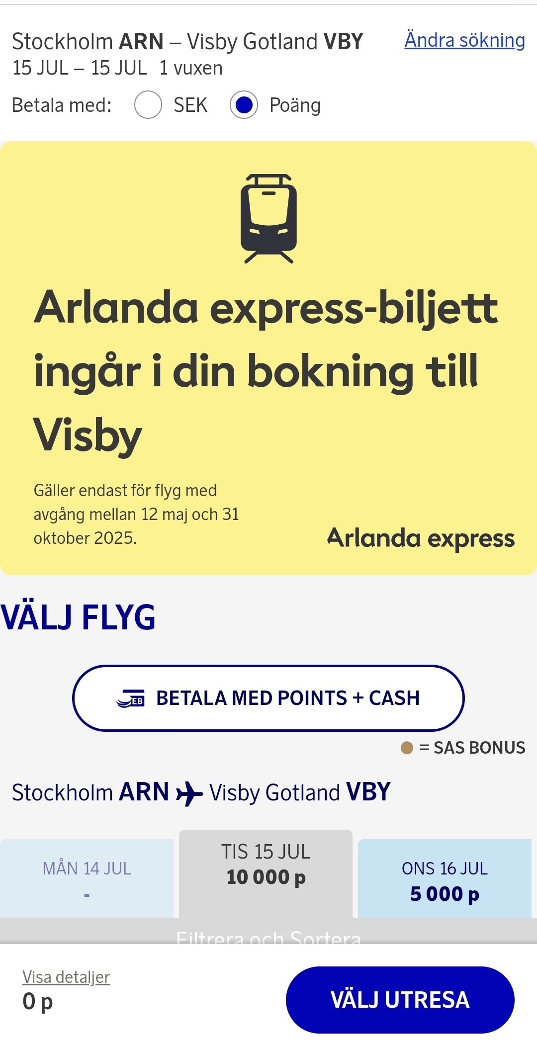 Tack, så var det. Funkar fint med poäng och länken kommer med boardingkortet. Dock lite märkligt att det inte framgick någonstans under bokningen och att de la med en länk för att köpa biljett med Arlanda Express. Slutet gott allting gott.Det fungerar med poäng, testade senast igår! Som skrivs: kommer i samband med boardingpass.