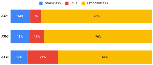 Rent teoretiskt så ja. Var väl några månader sedan någon skrev om att de bokat plus på en A321LR men att alla paltser var upptagna och inte kunde välja palts då. Väl vid avgång så satt personen i business istället då någon onekligen behövde flyttas dit (eller flyttas bak till economy)En snabb jämförelse visar skillnad i ratio på kabinstorlek på SAS flygplan. Är det lättare att bli uppgraderad Plus->Affärsklass på en A321 än en A330 till exempel?