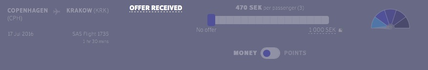 Vet inte om det är någon som skrivit om det här innan, men förstår jag det rätt som om priset i SEK på bilden nedan anger värdet av de poäng som jag budat med? Mitt bud var 5 060 poäng per passagerare och inte i cash. Lägsta bud i cash var 400 kr. Eller var kommer siffran 470 kr per passagerare ifrån?