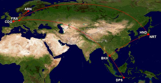 Det fanns två platser ute som gick att boka direkt. Missade tyvärr två platser mellan BKK - CDG med TG First med A388 med ett par dagar så det fick bli via Rom.