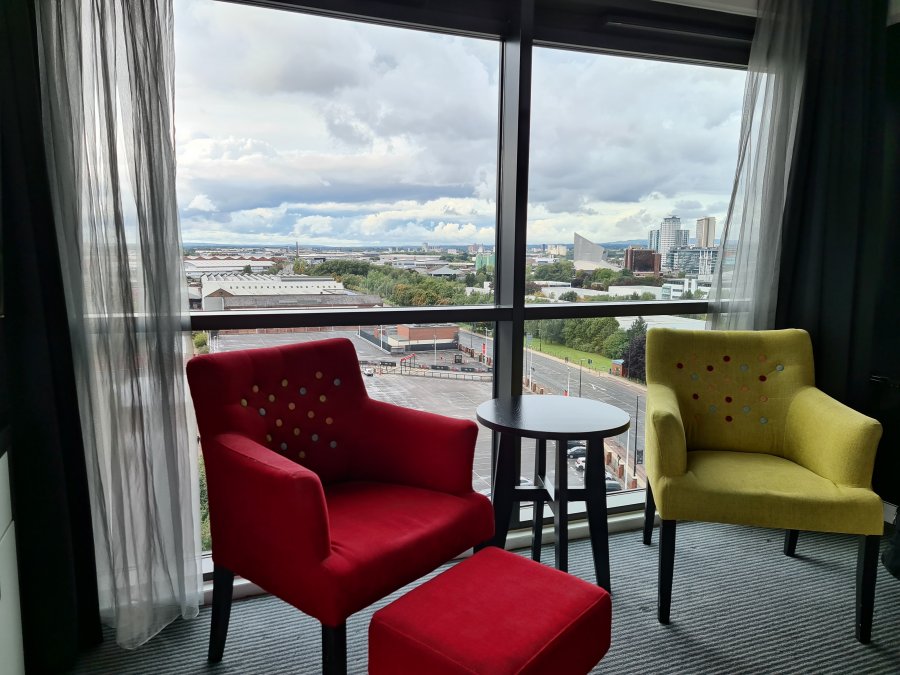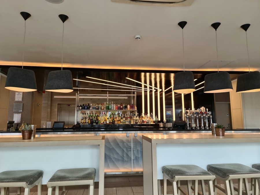 Veckans sista hotell, AC Hotel Manchester Salford Quays. En bonus att bo så nära hem var att min kära fru kunde komma och köra mig de 500 metrarna mellan hotellen. Blev uppgraderad igen, 4 av 4 denna veckan. 4 av mina 15 nätter på platinum challenge avklarade, hoppas jag hinner resten innan Boris stänger ner. Gick ner för att använda drinkvouchern, fick reda på att de kör 3 timmar happy hour med halva priset som startar om en timme, kan bli en bra eftermiddag detta.