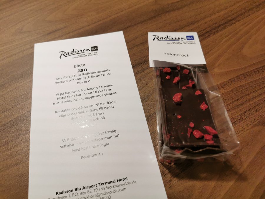 Välkomstgåva: En liten påse med hallonbåtar.