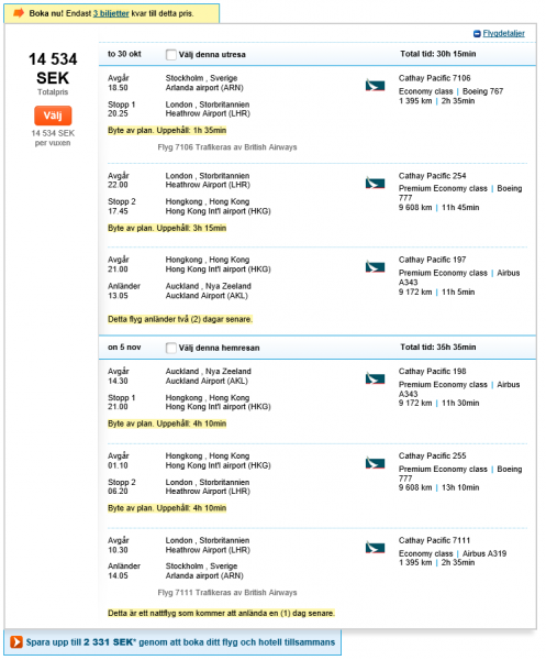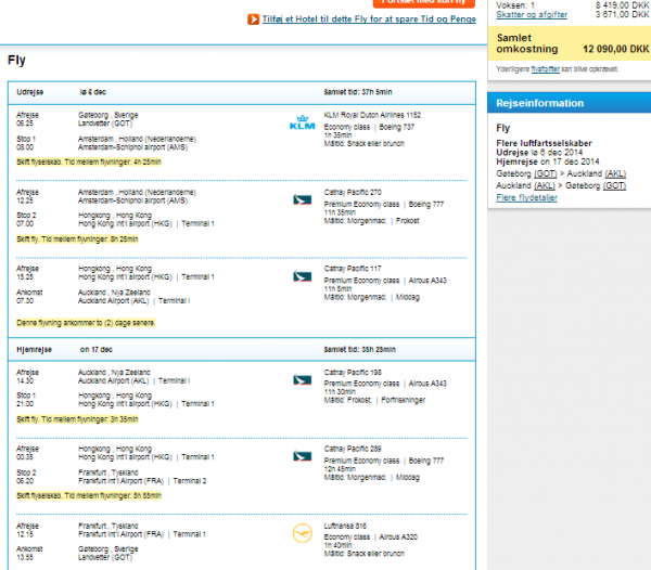 Jag skulle dock tro att Expedia i detta fall hittar det publicerade priset RRT mellan GOT-AKL som kostar 84754SEK + skatter och avgifter! I fallet med Business class är det ett ickepublicerat pris som hittas.