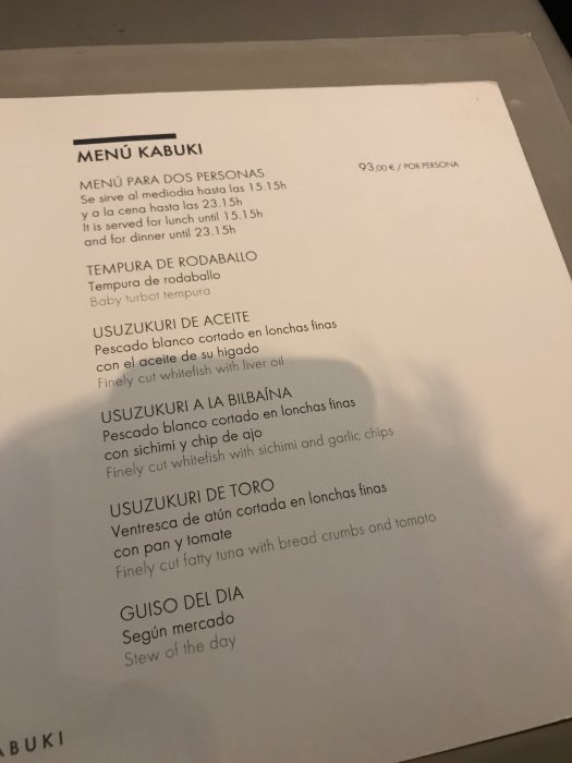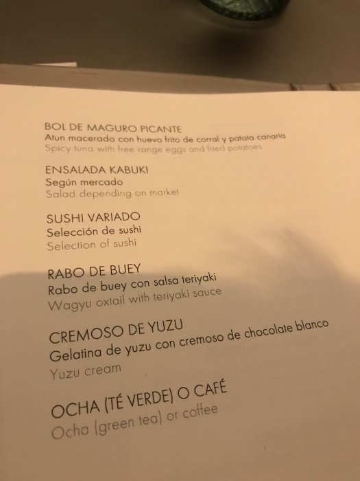 Besökte den enstjärniga japanska restaurangen Kabuki Wellington för några veckor sedan. Vi åt deras avsmakningsmeny för 93 euro. Råvaror av mycket hög kvalitet i japanska rätter med inspiration även från det spanska köket. Inte lika traditionell som Kappo men god mat. Lokalen skulle snart behöva en uppdatering då den börjar kännas lite daterad. Jag skulle nog välja Kappo för Kabuki om jag bara skulle välja en japansk restaurang i Madrid.