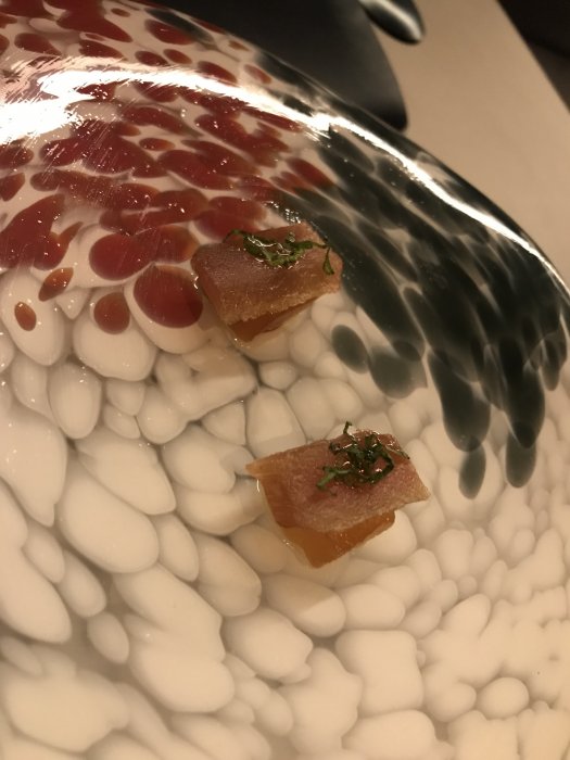 Tillbaka från Madrid och tänkte därför dela med mig av några restaurangbesök. Börjar med det mest spännande först nämligen besöket på trestjärniga DiverXO. Vi pratar alltså om den i Spanien kanske just nu mest omskrivna kocken Dabiz Muñoz restaurang. Jag har tidigare besök DiverXO när den hade två stjärnor och hade en annan lokal. Det besöket var riktigt bra och jag älskade fusionen mellan Spanien och Asien i matlagningen. Då kostade avsmakningsmenyn knappt 100 euro, men som en följd av ny lokal, en ytterligare stjärna och stjärnstatus kostar nu avsmakningsmenyn 250 euro. Dock ska påpekas att menyn innehåller inte mindre än 24 rätter.