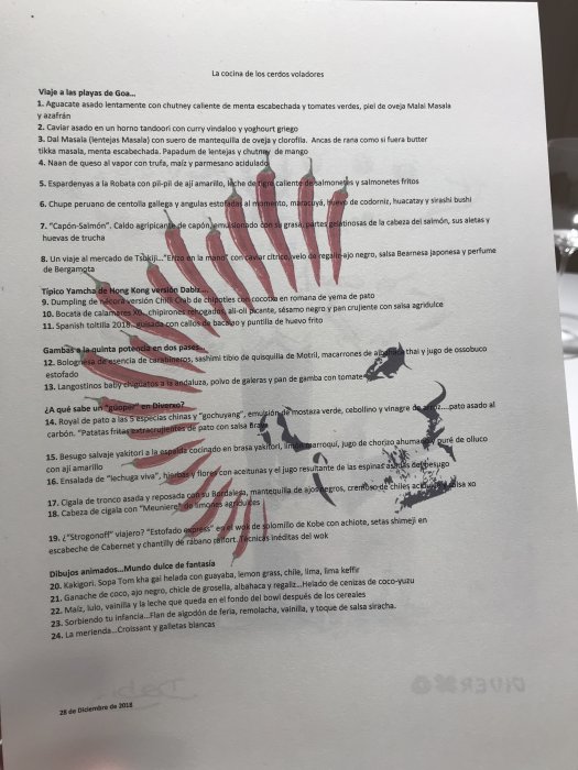 Så här såg menyn - The Flying pigs cuisine - ut!