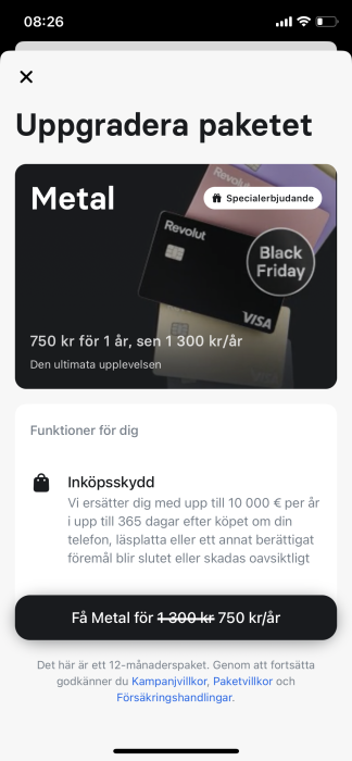 Tack! Blev ett fint expressbrev före JulTänkte bara tipsa om att Revolut kör Black Friday kampanj på metalkorten - 750 kr för ett år.