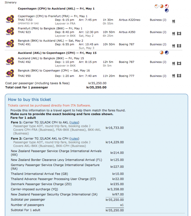 Söker: [Business]Köpenhamn - Auckland/Brisbane | 1 Maj - 16 Maj