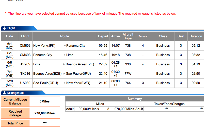 Ett tips. Om du bokar som två enkelresor kostar det mer poäng (20% mer än vanligt) men på returesan från Brasilien slipper du att betala bränsletillägget.