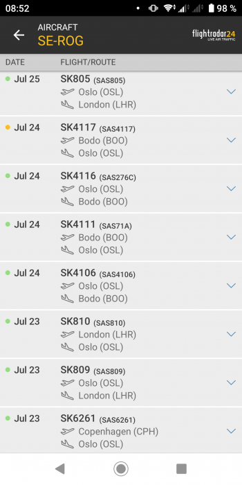SE-ROG är kvar i Norge och har flugit ytterligare en sväng till London och idag en ToR Oslo - Edinburgh.