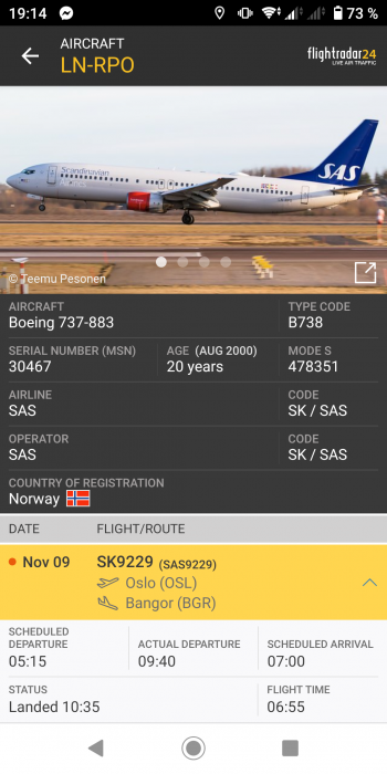 Maskinen kom som fabriksny in i SAS flottan 2013 och har huvudsakligen flugit för Sverigebasen. Flyttades till Oslo för något år sen men har varit avställd sen i mars.