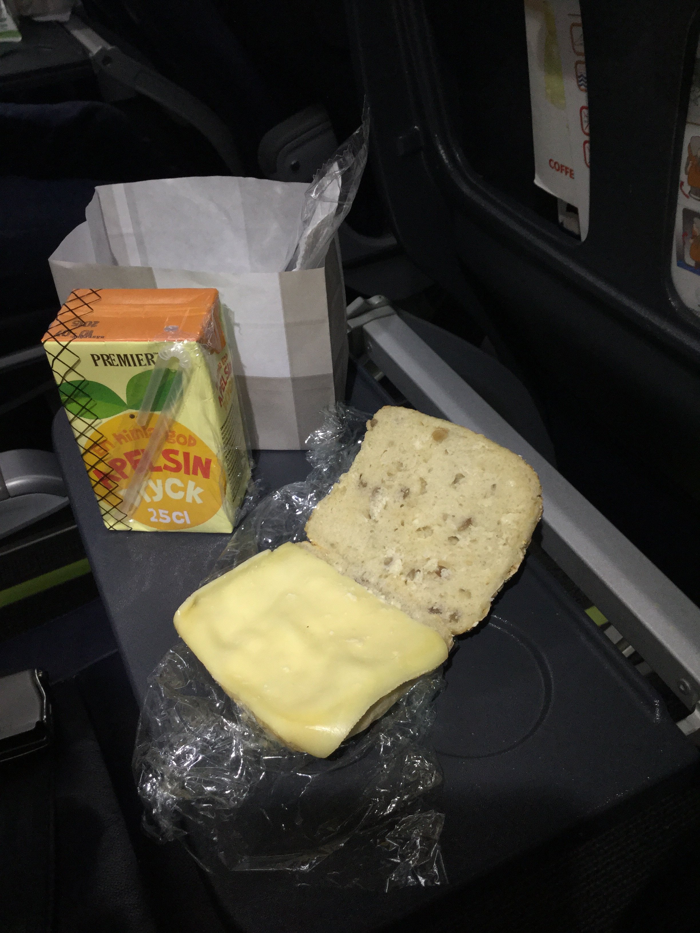 Just detta borde hamna under, detta gjorde ni bra... För det visar kreativitetDe löste det riktigt "snyggt" la upp de mackor de hade på en bricka, la dit lite wasa sandwich, choklad, smoothies, juice, muffins och sen fick var och en av oss 8 välja själv. Fanns mackor kvar till siste man