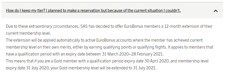 Antagligen är jag den trögaste människan på jorden eller bara mer än normalt fredagsmosig... men när jag läser detta på SAS webbsida tolkar jag det som att vi med kvalificeringsperioder som avslutades (expiry date) 31 mars 2020 (dvs som min period, 1 april 2019 - 31 mars 2020) får automatiskt förlängd status med ett år (och OM det är sant så skulle jag halka in på 10 raka år med EBG).