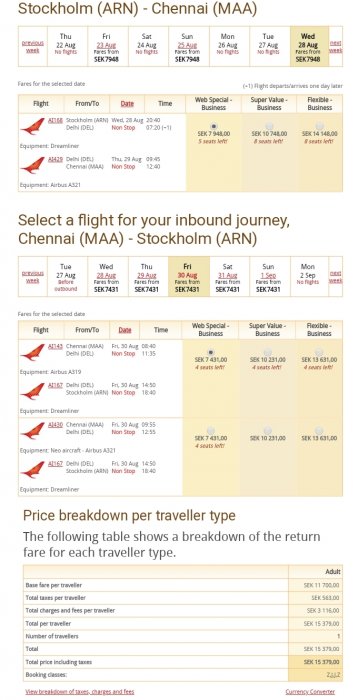 Alltid på flygbolagets egen sida om priset kan hittas där (eller via någon allianspartner som får fram samma priser)Tusan. När jag i vissa sökningar glömt att fylla i den rutan så tar den givetvis samma valuta som avreseorten...