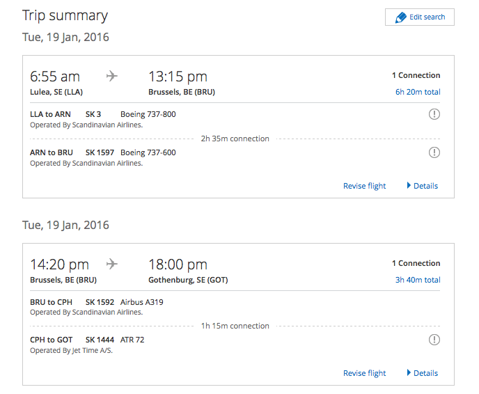 Det räknas som Open Jaw (Luleå-Bryssel, Bryssel-Göteborg).