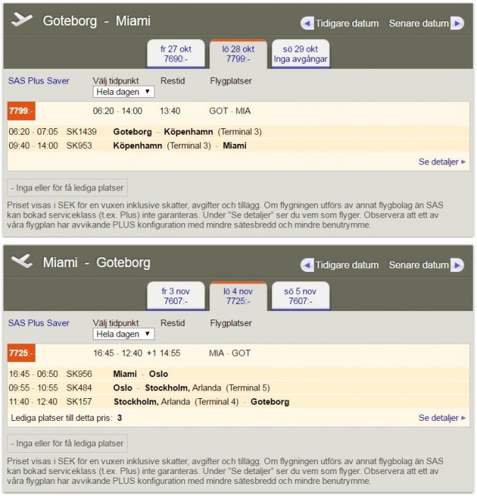 Damn, himla dumt att man åkte och tränade direkt idag och missade förturen att boka. Någon som fortfarande är inne och kan se prisläget från GOT-MIA 28/10-4/11?