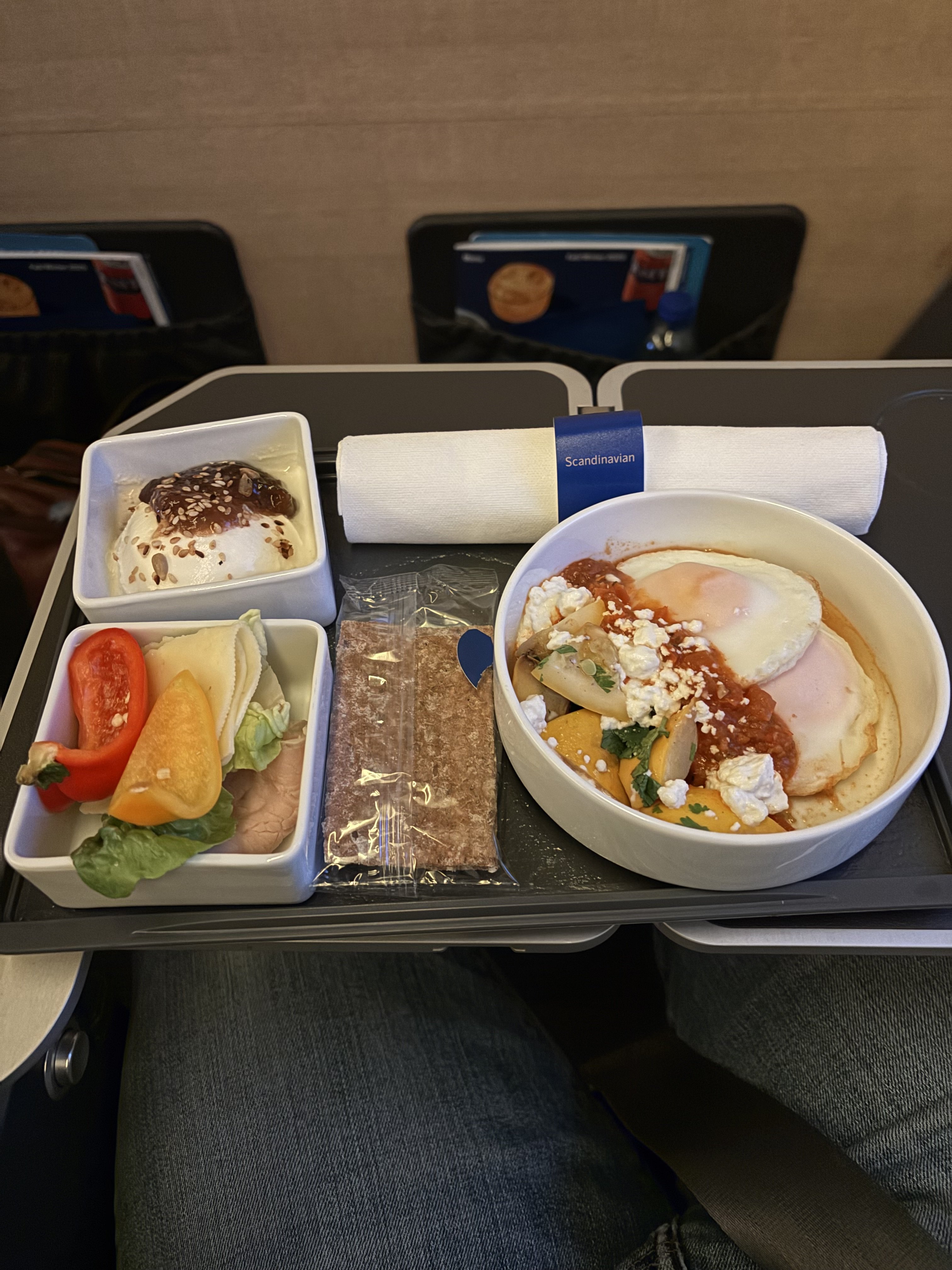 Flygningen ARN - PMI igår morse var en fullträff. Nötter och dricka innan frukosten, väldigt god frukost och sen en andra servering bestående av kanelbulle och skumpa. 4 rader business, ingen vagn utan 2 st crew serverade från galley, gardinen fördragen och åtminstone 2 eco-människor blev hänvisade till bakre toaletten. Riktigt bra av SAS!