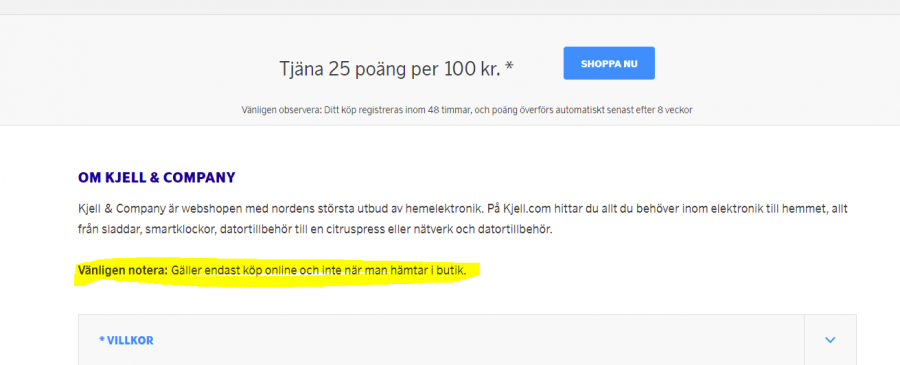 Men Sas.onlineshopping.se säger att det inte gäller. Så oklart hur jag fick poängen.