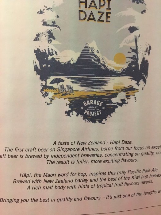 Stämmer att den bara serveras på NZ linje.Jag har fått bra öl på Singapore Airlines, Hapi Daze från Garage Project. Kanske var det bara en lokal grej mellan NZ och Singapore. Hoppas de fortsätter satsa på sånt här.
