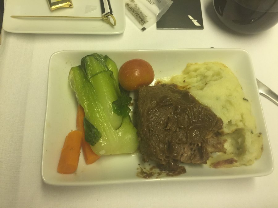 Till huvudrätt hade jag valt Hoisin Glazed Beef Short Rib med wasabi mashed potatoes, baby bok choy and baby carrots. Tycker inte detta liknar Ribbs, tyckte inte stolsgrannen heller då vi båda såg lika förvånade ut då detta serverades, smakade helt okej dock. Mosen smakade väldigt speciellt, måste pröva detta då jag kommer hem.