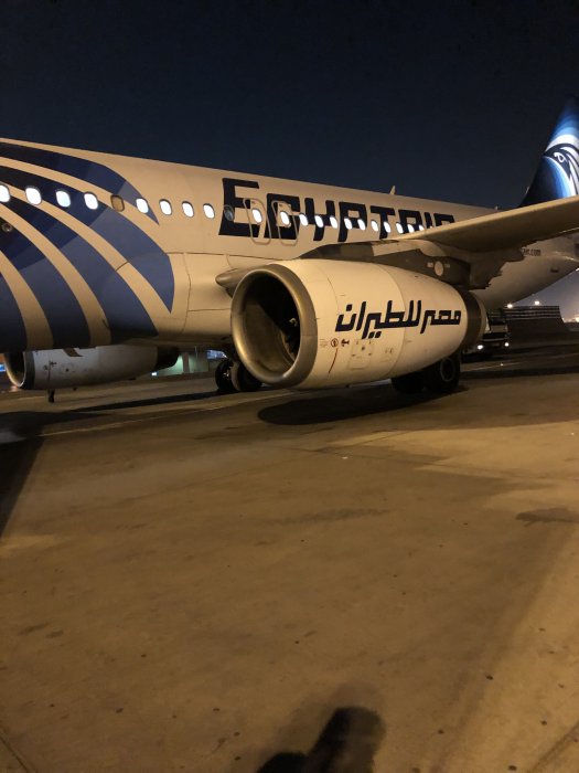 I landade ungefär en timme sena i Kairo och jag skulle vidare till Entebbe. Hade en transfer på 1h50min så var inte så orolig men en otrolig seg busstransfer gjorde att jag hann börja bli lite orolig. Här är planet som flög oss från CPH till CAI.