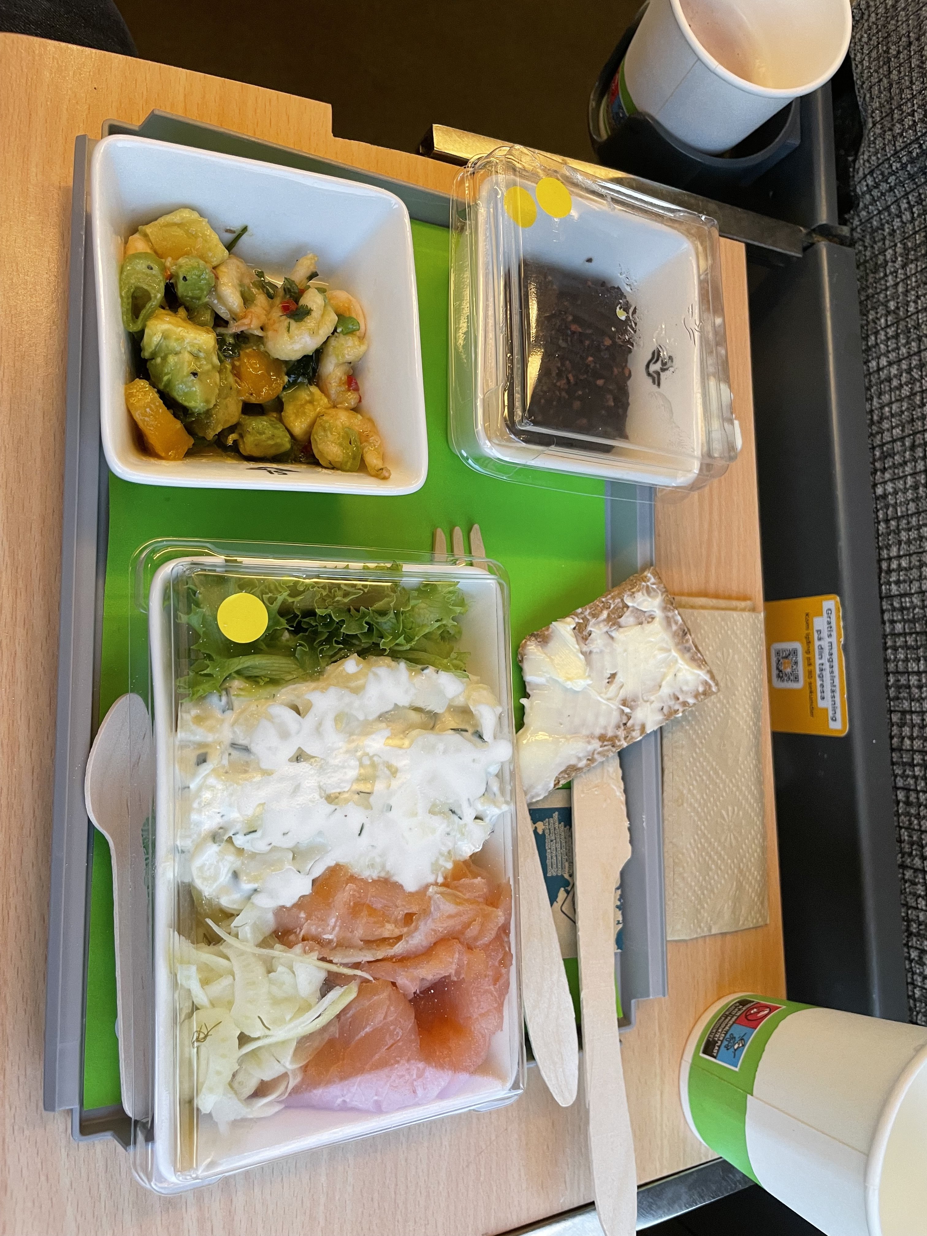 Snälltåget, trots mycket annat halvdant, har trots allt en ÄKTA restaurangvagn, vita dukar, varm mat på tallrik av porslin.....