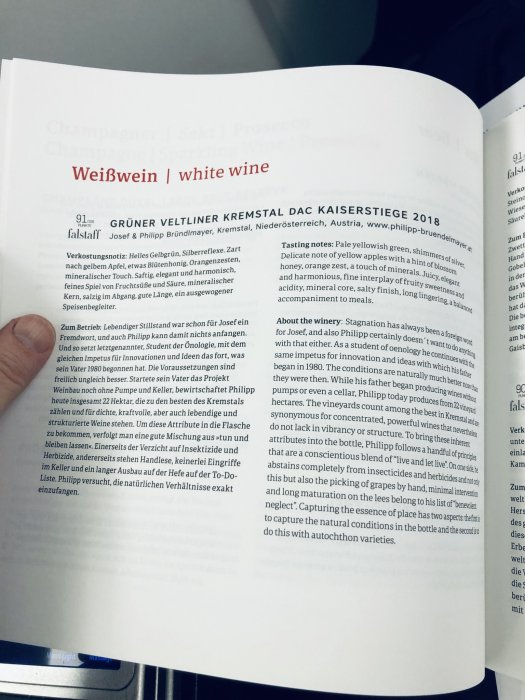 Bra utbud av vita viner från Österrike men alla alldeles för unga för att vara riktigt intressanta. Bäst av de vita var överraskande Pinot Blanc från Kracher. Drack inte de röda men såg mindre intressant ut men gillade dessertvinet (Beerenauslese från Kracher).