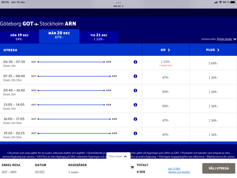 Jag har en liten undran 117 kr tur och retur hur mycket är skatter och flygplatsavgifter på två Swedavia flygplatser på en sådan resa?