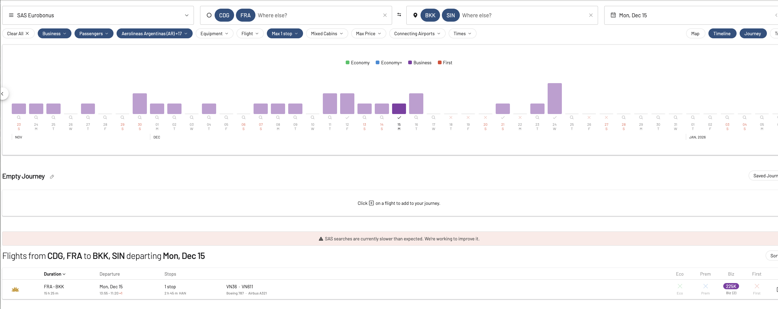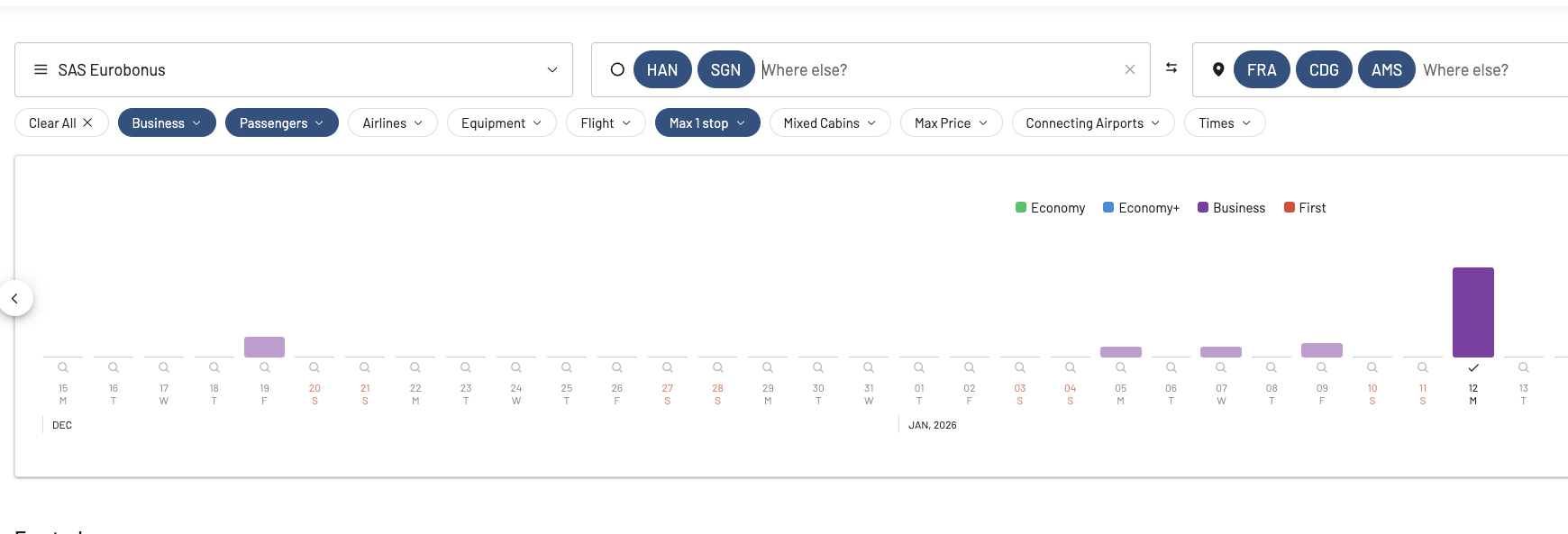 Om jag har EuroBonus poäng som jag vill använda, men jag vill flyga en rutt som inte SAS flyger, det finns Sky Team bolag som flyger, men när jag söker i SAS "Partnerflygsökmotor" så kommer den tillbaka tom.