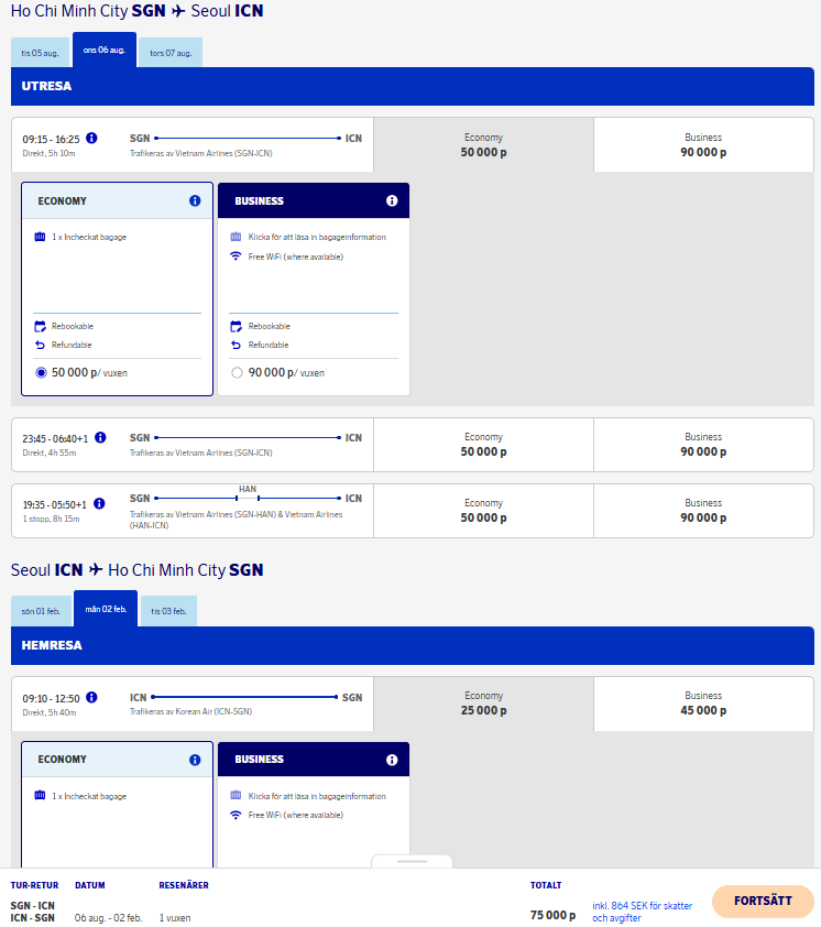 Nu är tanken inte ekonomi klass samt så är ICN ej slut destinationen. Fann en Business till Hong Kong med Delta men på fel datum. Utbudet är märkbart sämre än tidigare