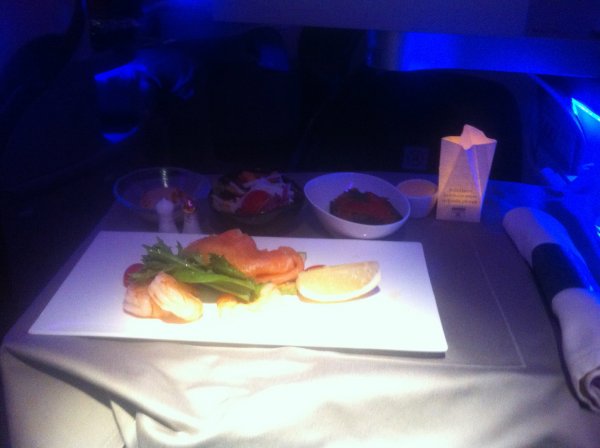 Servicen var uppmärksam och flygvärdinnorna gick flera gånger genom business-kabinen och tittade. Nästan lite väl ofta så jag fick känslan av att de undrade om jag inte ätit klart snart.