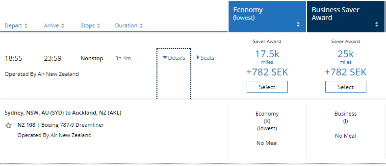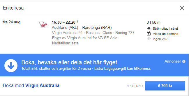 Flyget dit betalar de med poäng med Air New Zealand som en separat biljett i economy så sparar de omkring 8000kr då två biljetter som annars ligger på US$1020, så det blir ett kap.