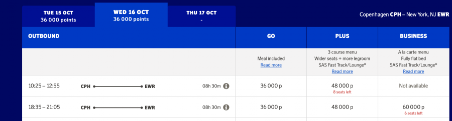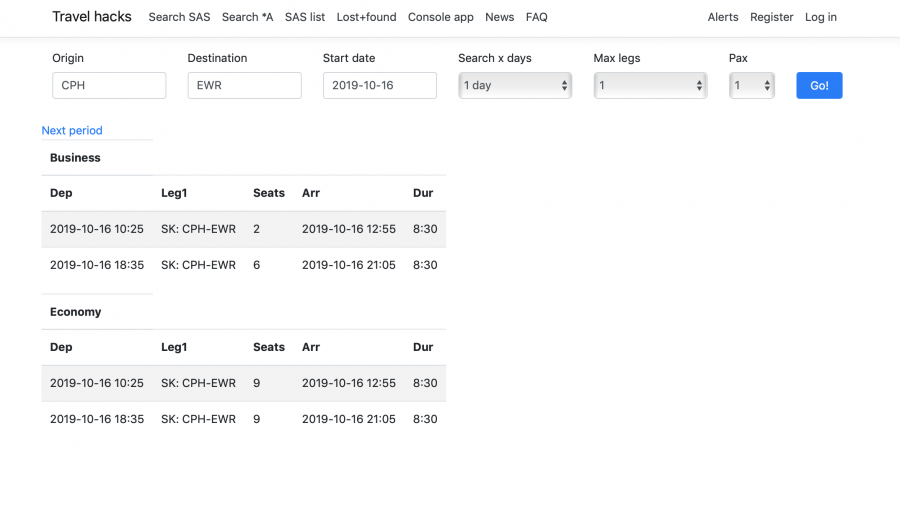 Jag visar all tillgång som finns. SAS system stödjer inte premiumekonomi eller första klass.