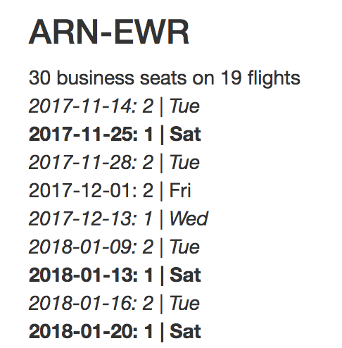 Jag tog mig friheten att koda ihop ett javascript som markerar vilka dagar det rör sig om, endast på sidan som bara visar business.